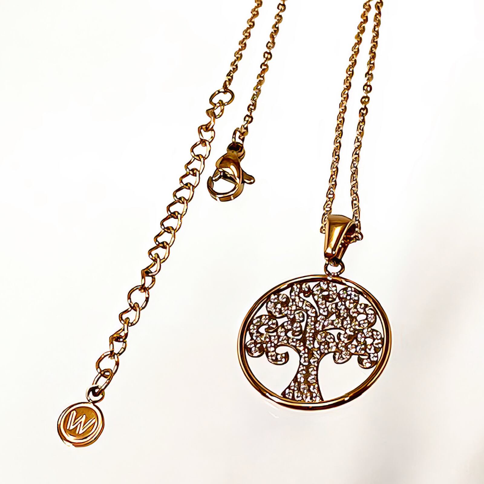 オリバーウェバー ステンレススチール316L製 クリスタル ネックレス Tree ローズゴールドカラー